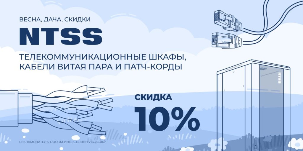 Скидка 10% на телекоммуникационные шкафы и расходники NTSS по промокоду