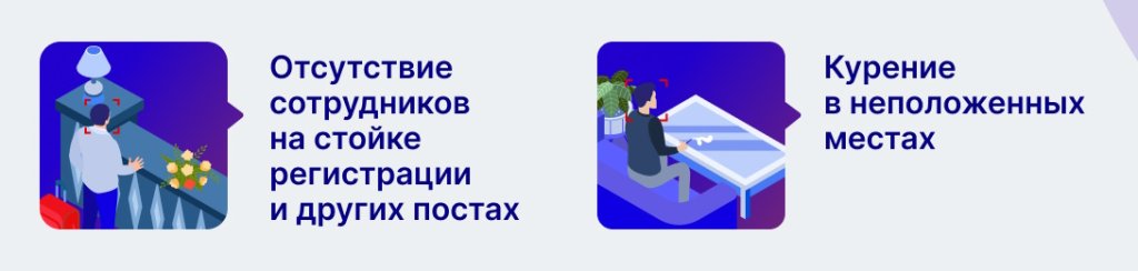 - Отсутствие сотрудников на стойке регистрации и других постах